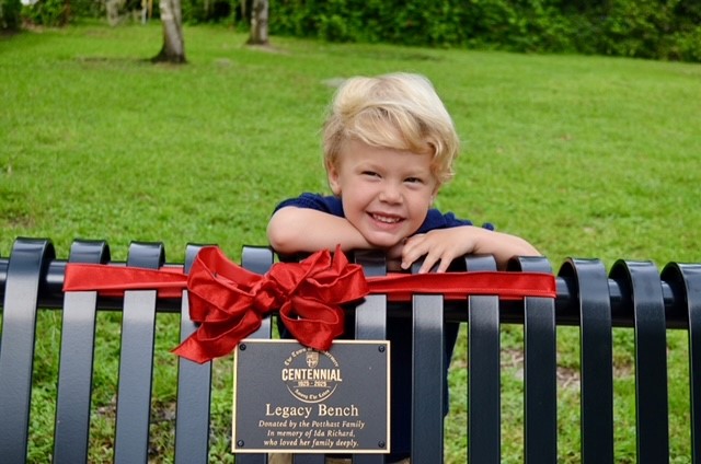 A new Legacy bench has been donated by the Potthast family at Palmer Park. Genevieve and Tom moved to Windermere in 1998, where they raised four children. Their daughter, Jeanne-Marie, along with her husband Nicholas and son Lawrence, currently resides here as well. Lawrence is the third generation of their family in our wonderful town. The bench is a tribute to Genevieve’s mom, Ida Richard. In the photos: Tom and Genevieve Potthast, Jeanne-Marie, Nicholas, and Lawrence (3) Olache, Christine Potthast.